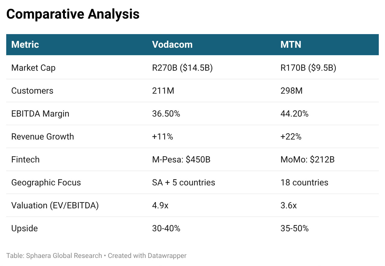 This report identifies Vodacom Group (VOD.JO) and MTN Group (MTN.JO) as BUY opportunities, trading at 30-50% discounts to intrinsic value while delivering double-digit revenue growth and expanding into high-margin fintech services.