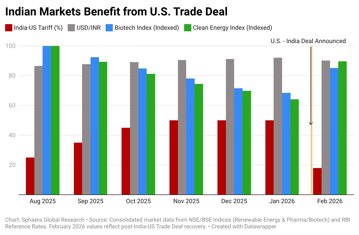 This deal goes into effect, we also see massive inflows of USD and outflows of Indian Rupees, driving up the value of the Indian currency and reversing its year-long depreciation since the U.S. announced tariffs.